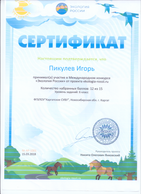 Участие в международном конкурсе "Экология России" |