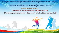 Отчёт работы за ноябрь 2018 года. Ответственные: Старший воспитатель :Жбанов А.В, Спорт.организаторы :Шемелёв Е.Л., Тинников А.В.