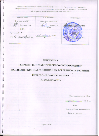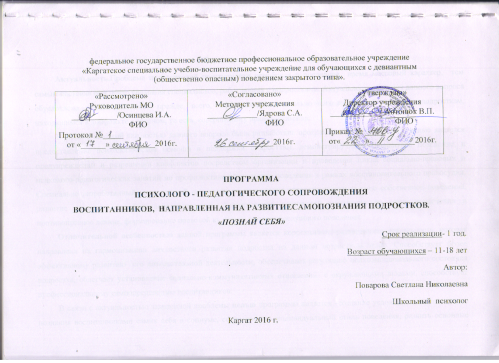 Программа психолого-педагогического сопровождения воспитанников, направленная на развитие самопознания подростков