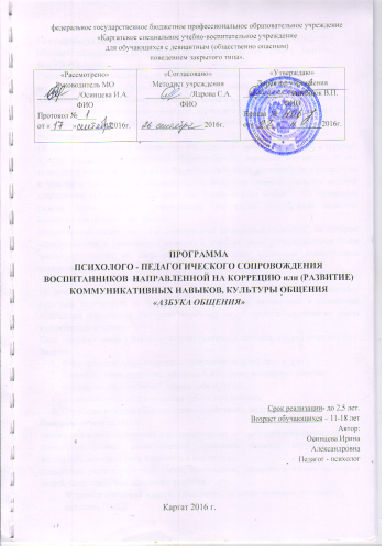 Программа психолого-педагогического сопровождения воспитанников, направленной на коррекцию или развитие коммутативных навыков, культуры общения «Азбука общения».