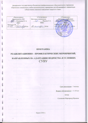 Программа реабилитационно-профилактических мероприятий, направленных на адаптацию подростка в условиях СУВУ