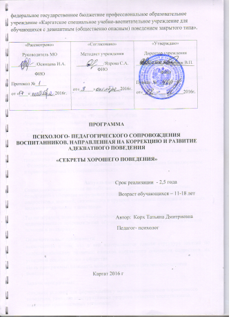 Программа психолого-педагогического сопровождения воспитанников, направленная на коррекцию и развитие адекватного поведения «Секреты хорошего поведения».