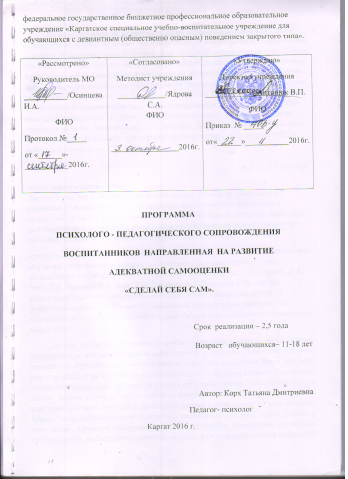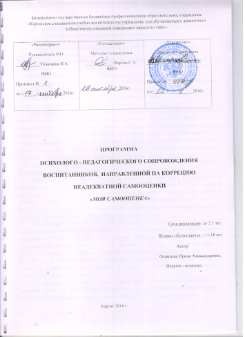 Программа психолого-педагогического сопровождения воспитанников, направленной на коррекцию неадекватной самооценки
