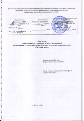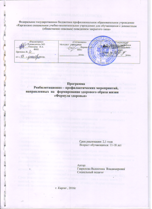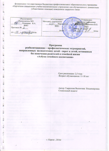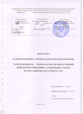 Программа реабилитационно-профилактических мероприятий, направленных на профилактику правонарушений девиантного поведения, самовольных уходов воспитанников «Каргатского СУВУ».