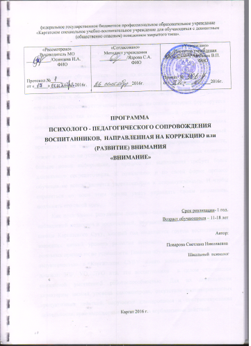 Программа психолого-педагогического сопровождения воспитанников, направленная на коррекцию или развитие внимания «Внимание».