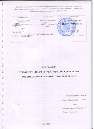 Программа психолого-педагогического сопровождения воспитанников в адаптационный период.