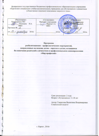 Программа реабилитационно-профилактических мероприятий, направленных на помощь детям-сиротам и детям, оставшимся без попечения родителей в личностном и профессиональном самоопределении «Мир профессий».