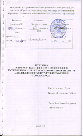 Программа психолого-педагогического сопровождения воспитанников, направленная на коррекцию или развитие бесконфликтного (конструктивного) общения