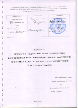 Программа психолого-педагогического сопровождения воспитанников направленной на коррекцию или развитие личностных качеств, самоконтроля, саморегуляции