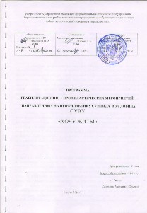 Программа реабилитационно-профилактических мероприятий, направленных на профилактику суицида в условиях СУВУ «ХОЧУ ЖИТЬ!»